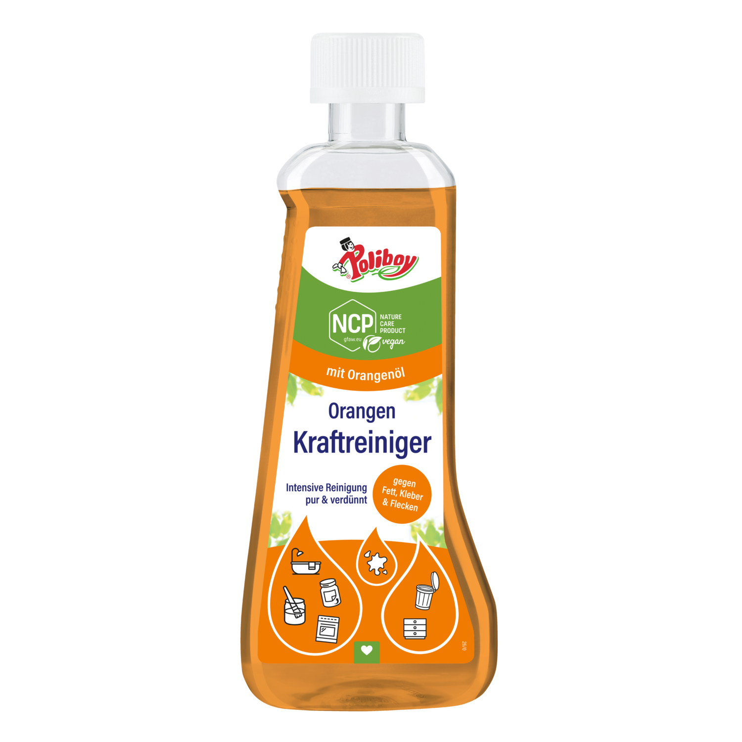 Undiluted: Moisten the stain or area, apply Orange Power Cleaner undiluted, allow to act, wipe off and rinse thoroughly with water.