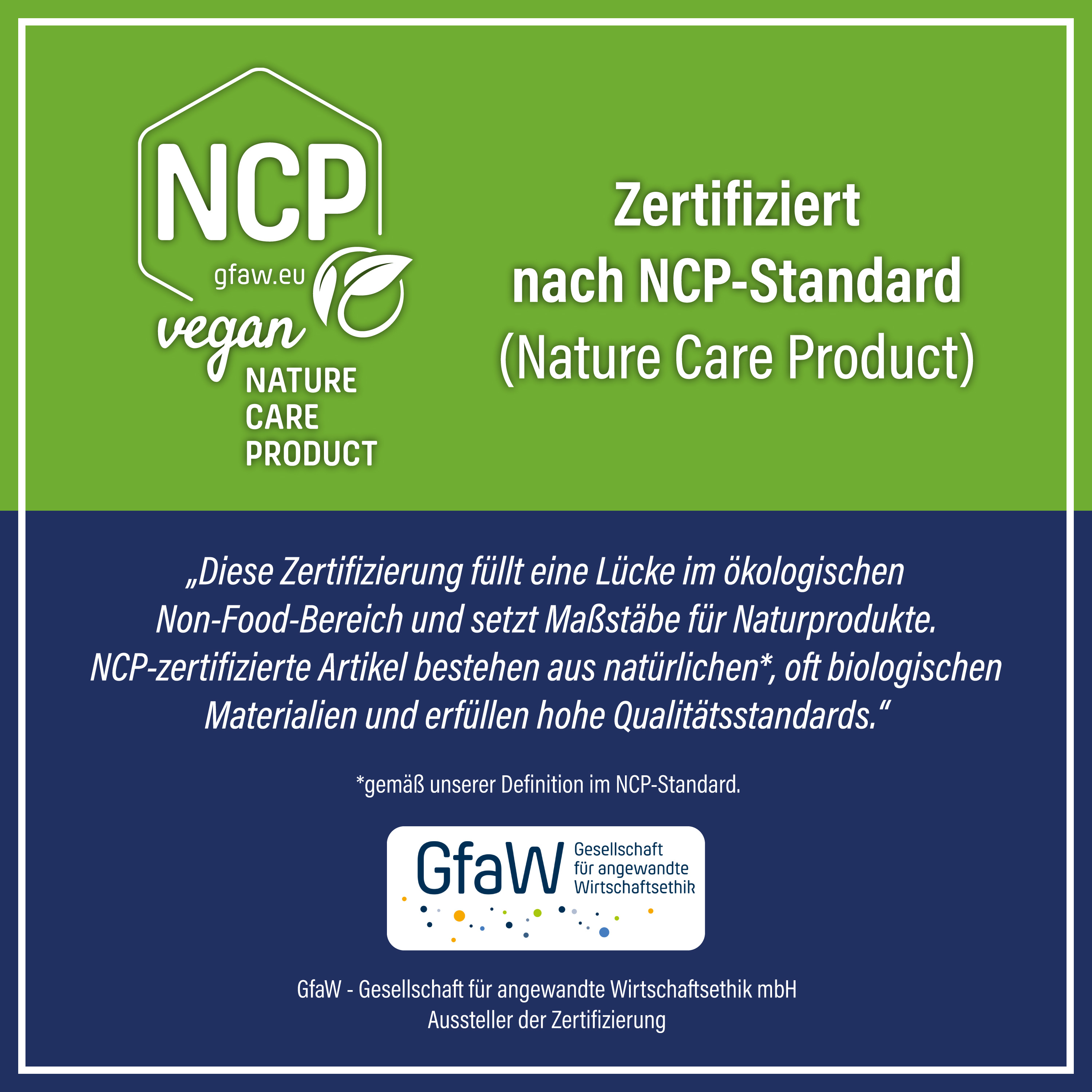 - Zertifiziert nach dem NCP™-Standard (Nature Care Product)