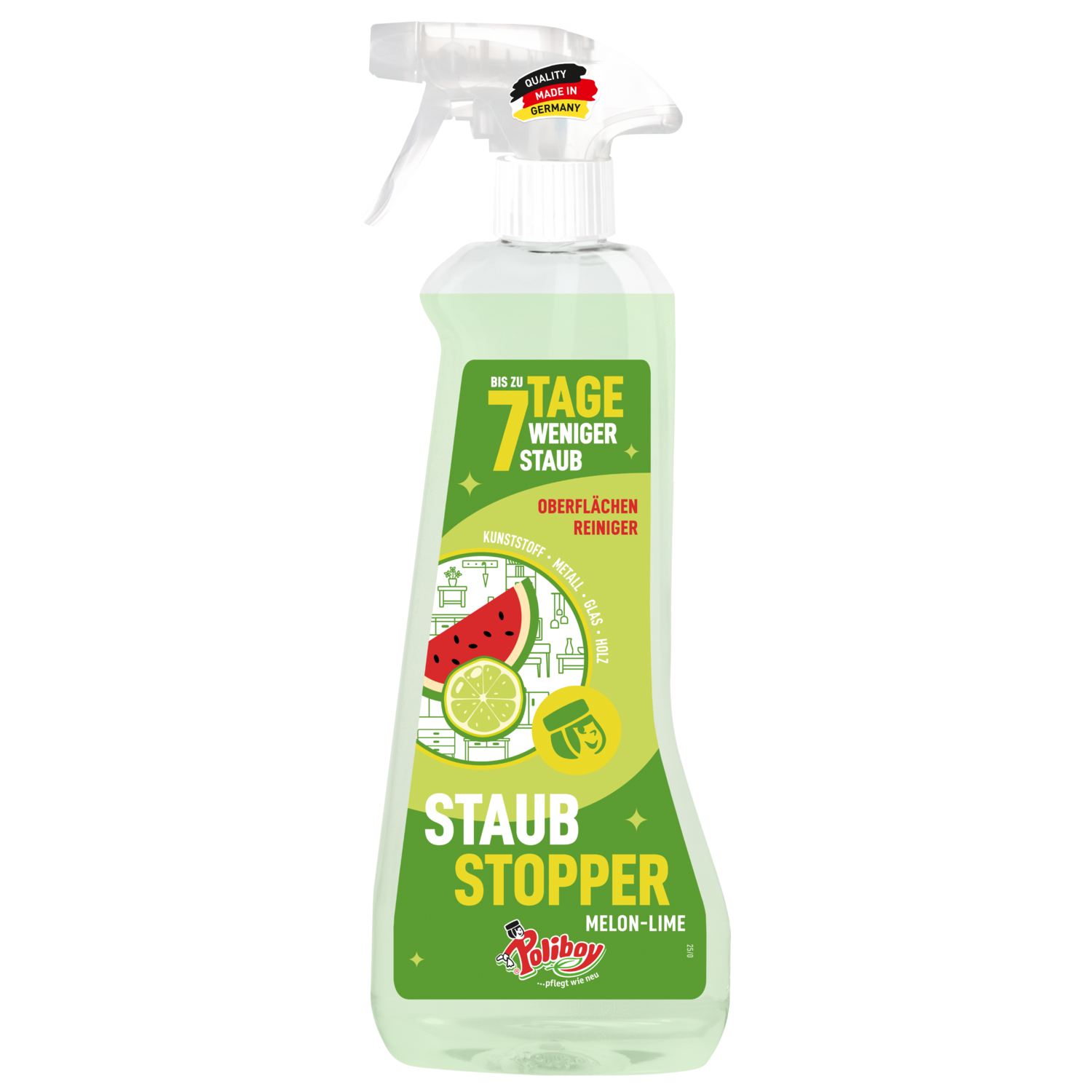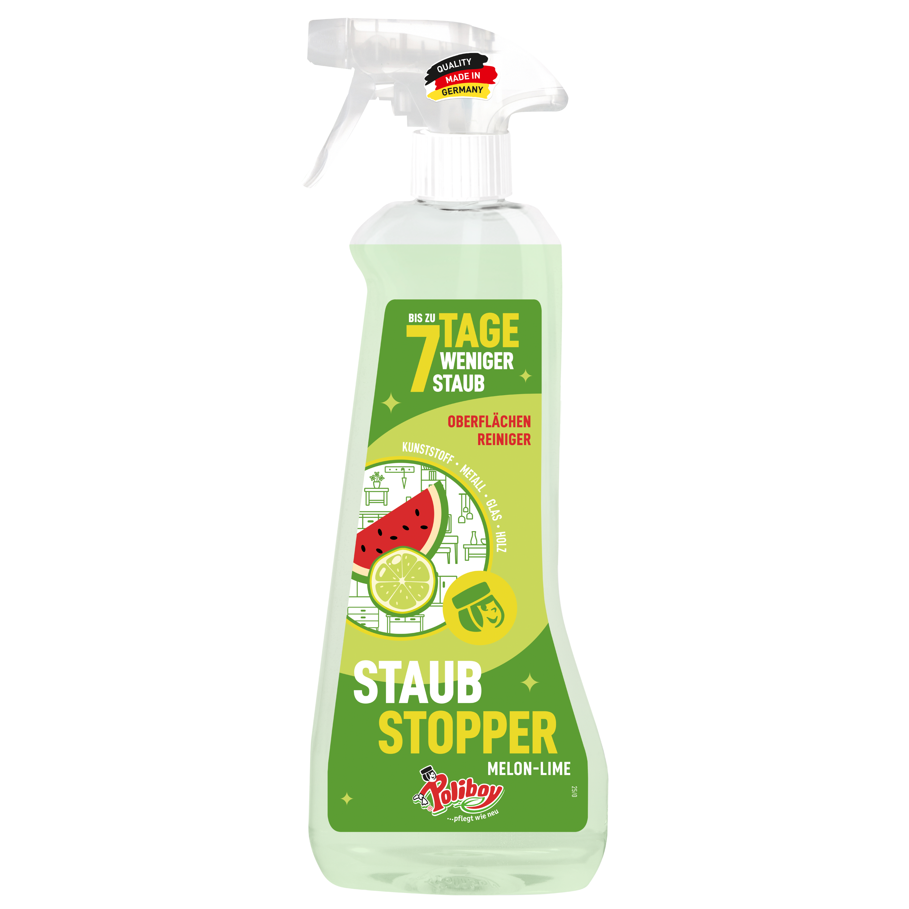 Öffne die Düse. Sprühe den STAUBSTOPPER aus ca. 20 cm Entfernung dünn auf und wische die Fläche mit einem sauberen Tuch ab. Glas- & Hochglanzoberflächen sollten ggf. mit einem trockenen Tuch nachgewischt werden. Empfindliche Oberflächen nicht direkt ansprühen und vorher an unauffälliger Stelle testen. Denke daran, die Düse nach Anwendung wieder zu verschließen