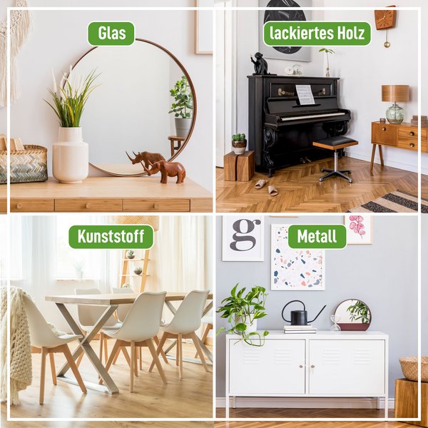 - Streifenfrei anwendbar auf fast allen Oberflächen im Haushalt: Holz, Kunststoff, Keramik, Metall und sogar Glas